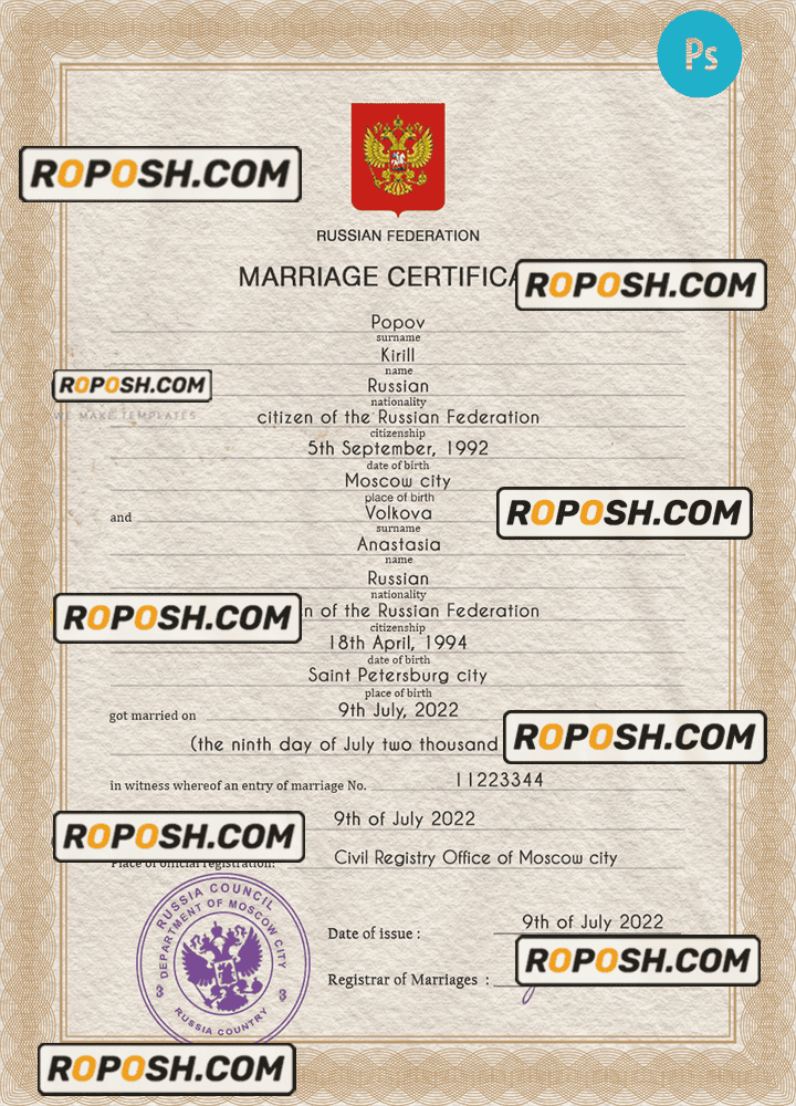 – Join our growing list of satisfied customers today by getting your hands on our blank Russia marriage paper certificates.