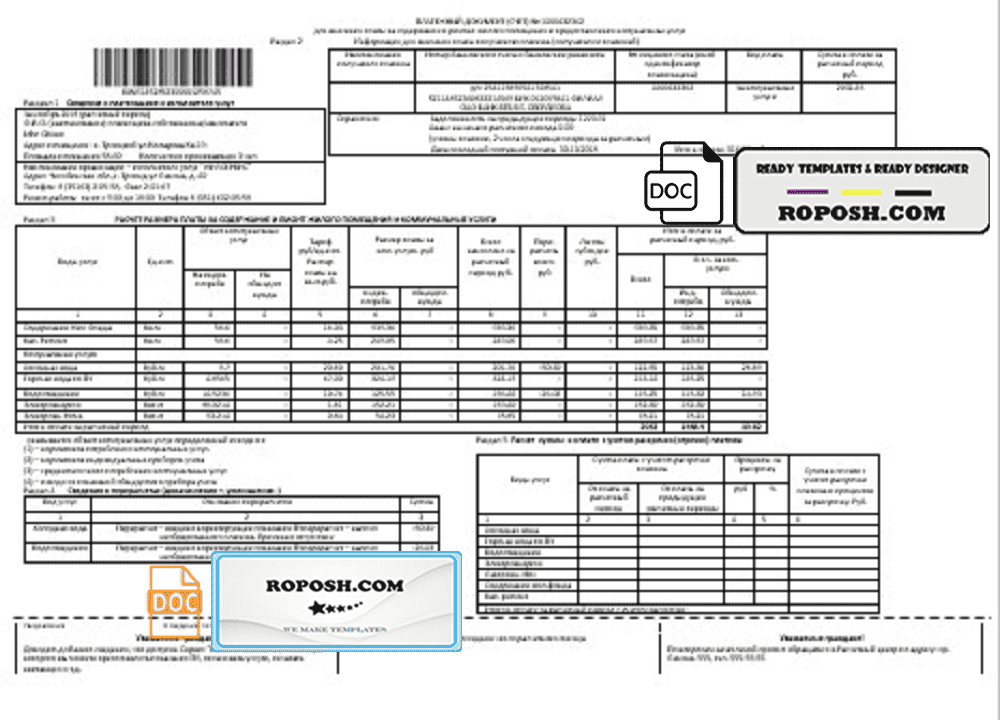 Download our fully editable Russia utility bill Word template. This high-quality, customizable template is layer-based and includes all necessary fonts. Easily modify the template to create a editable utility bill with any name, address, license number, ID number, birth date, height, weight, expiration date, and more. Perfect for proof of address and novelty documents. Ensure your documents are up-to-date and avoid account suspensions with our premium template.