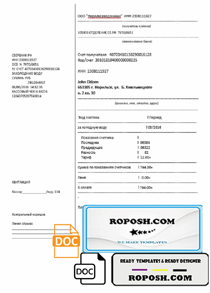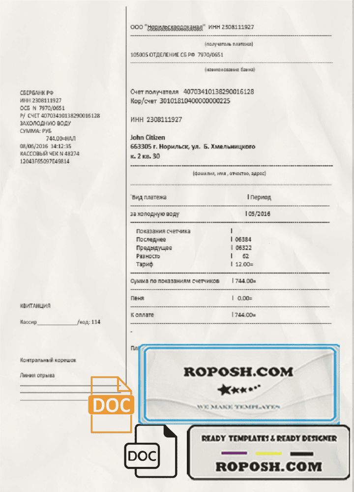 Be the first to review “Russia water utility bill template in Word and PDF format, fully editable”