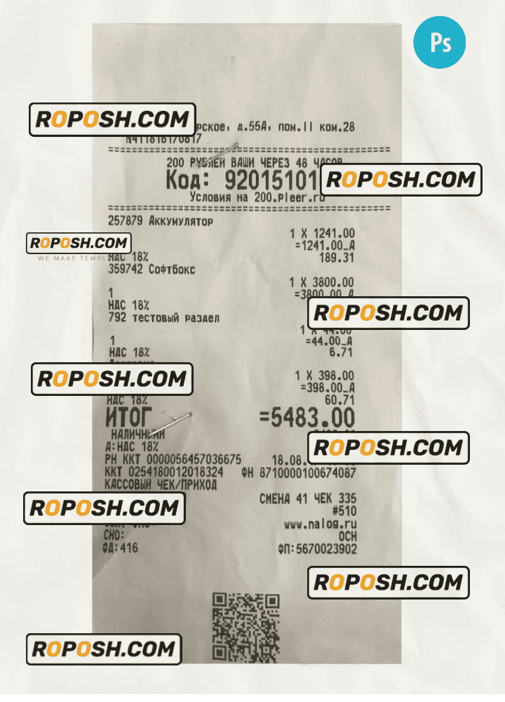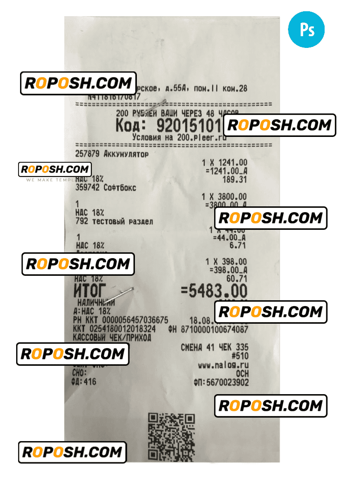 A RUSSIAN payment receipt in psd format is a document that can prove a successful transaction. It includes the purchase details such as the date of the transaction, the amount paid, a description of goods or services purchased, and a unique receipt number.