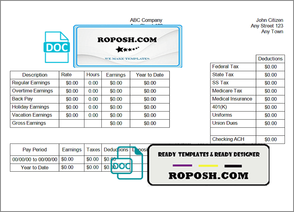 A pay stub form is a template used by an employer to provide detailed information about an employee’s paycheck.It provides information for both the employer and the employee.Fillable safe speech Word template . Fully editable blank pay stub template. High quality template. Easy to customize, Layer based, fonts included. you can edit this template and put any name, address, license number, Id number, birth date, height, weight, expire date, change photos etc. This Word template is a easy to Editing.To modify this Word template file you will need a Word editing software such as Microsoft Word. Never used low quality template. Your account may be suspended.