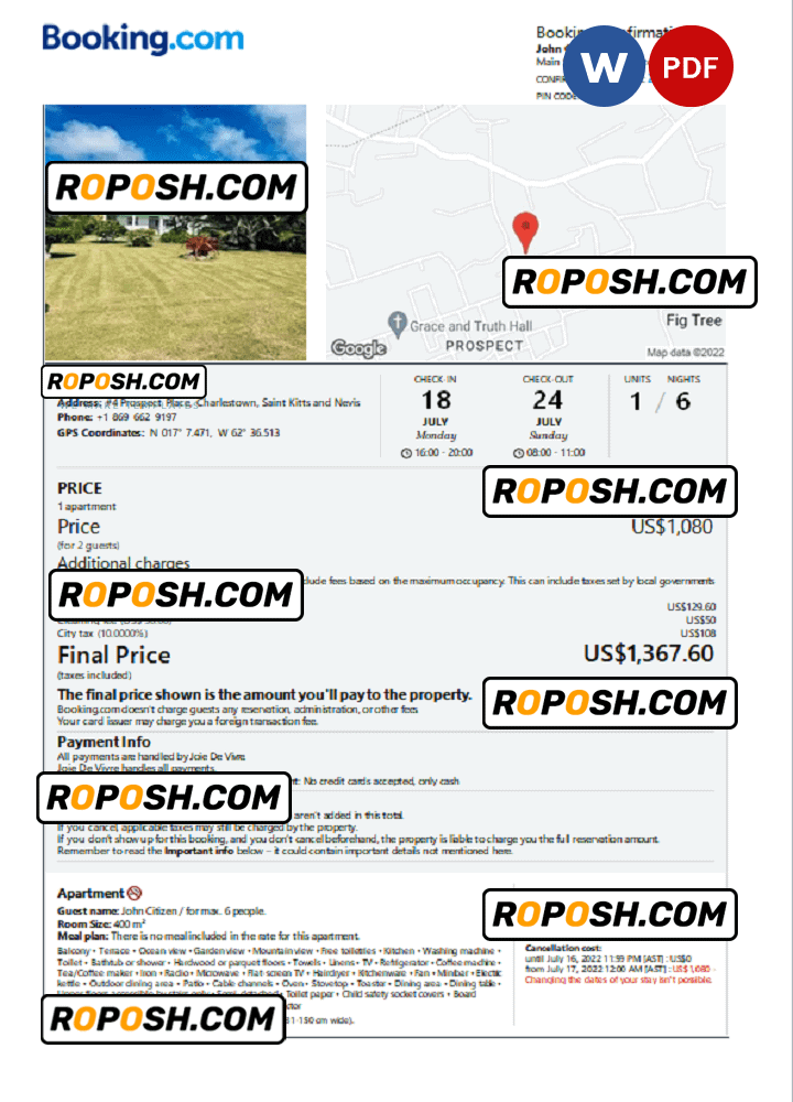 With its user-friendly design and flexible editing capabilities, this editable Saint Kitts and Nevis hotel booking confirmation hotel, room, house, and Airbnb reservation proof is the perfect choice for anyone looking to create a professional-quality editable hotel accommodation reception. So why wait?