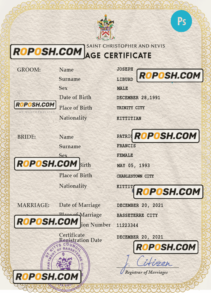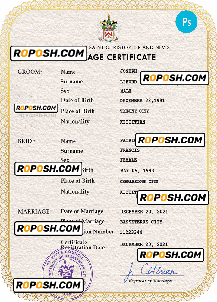 – Join our growing list of satisfied customers today by getting your hands on our blank Saint Kitts and Nevis marriage paper certificates.