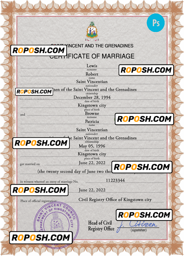 – Join our growing list of satisfied customers today by getting your hands on our blank Saint Vincent and the Grenadines marriage paper certificates.