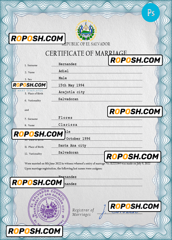 – Join our growing list of satisfied customers today by getting your hands on our blank Salvador marriage paper certificates.