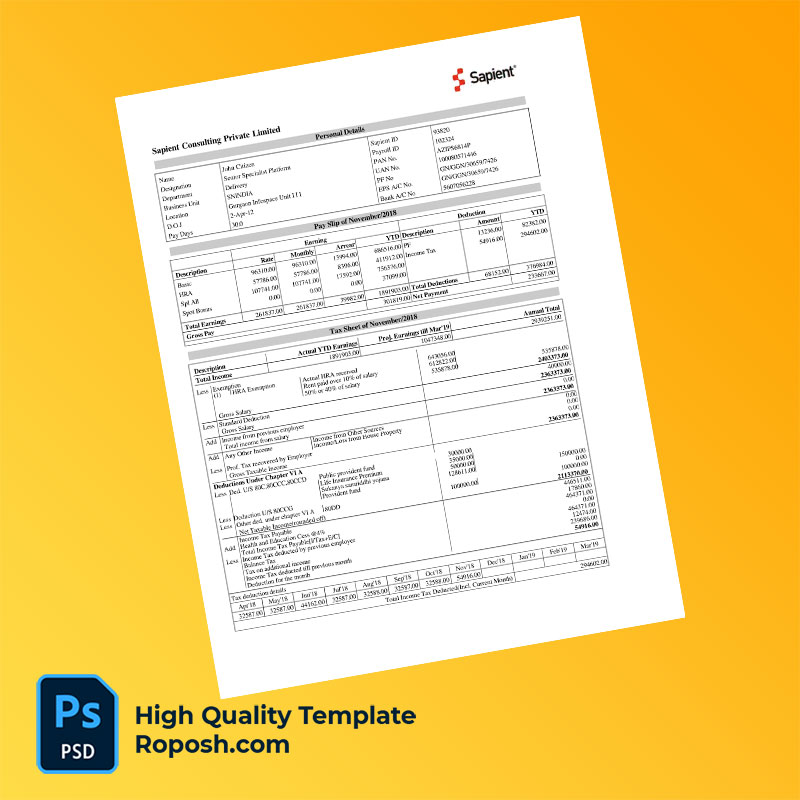 Sapient Consulting Private Limited payslip word and pdf template
