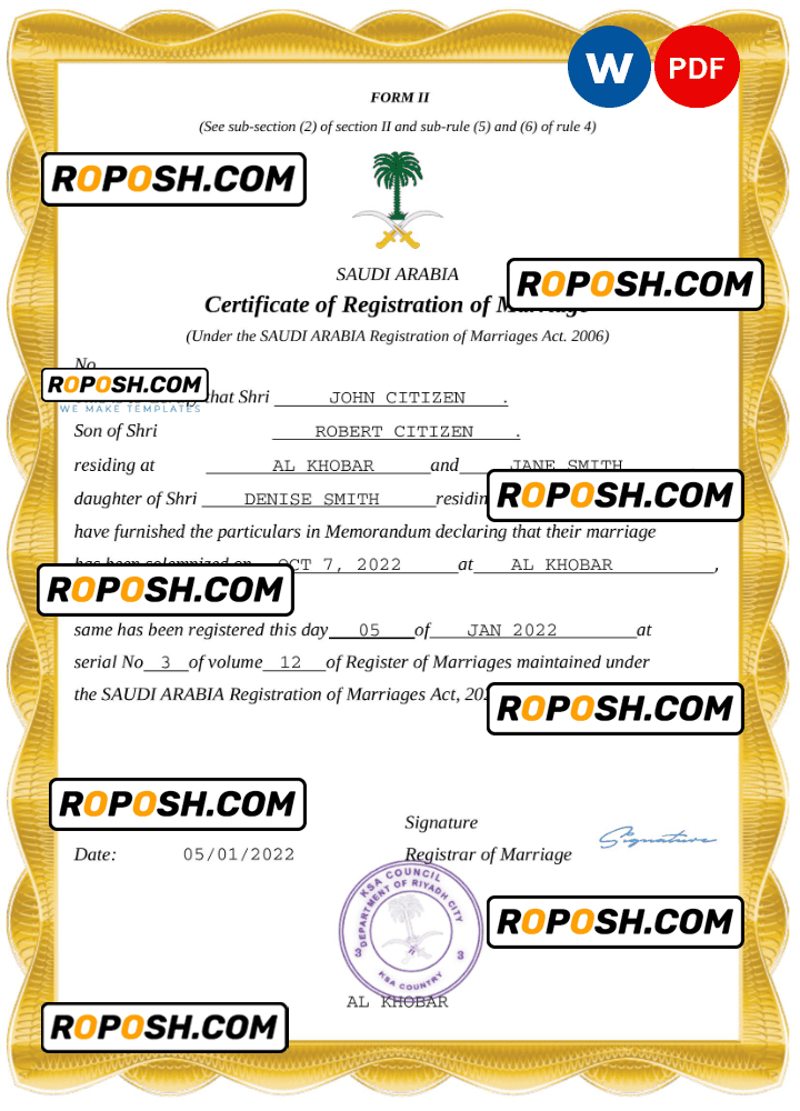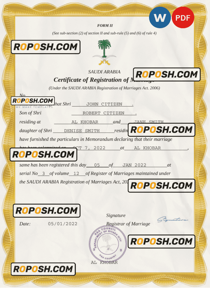 Get your printable Saudi Arabia marriage certificate templates now and join our growing list of satisfied customers!