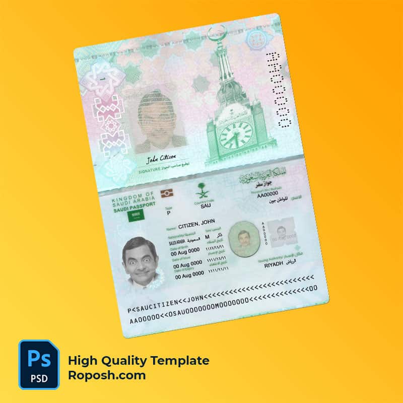 If you need a high-quality Saudi Arabia passport template, Roposh.com provides authentic, editable PSD files with full customization capabilities. Order now for instant access and professional design features!