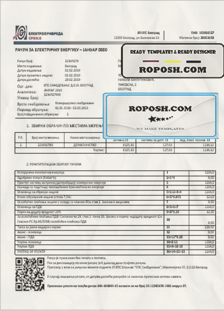 “Download the Serbia Електропривреда Србиjе Electricity Utility Bill Template in Word and PDF formats. Perfect for those who have lost their original document, this high-quality fake template is ideal for identity verification on trade sites, digital currency platforms, and payment services. Get your realistic, customizable utility bill template now!”