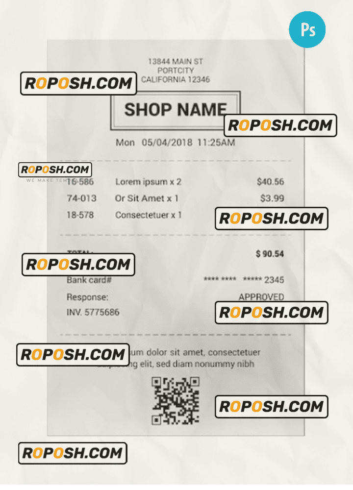 • Versatile: Our shop receipt PSD Template is suitable for a variety of verifications, and to prove your purchase.