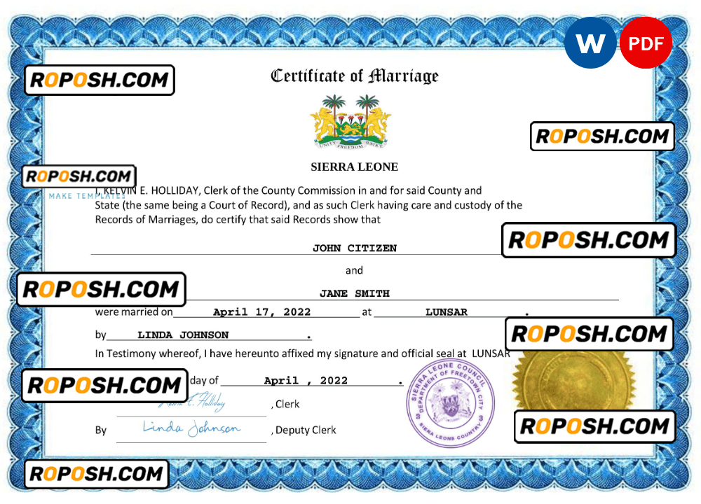 Get your printable Sierra Leone marriage certificate templates now and join our growing list of satisfied customers!
