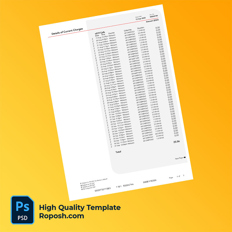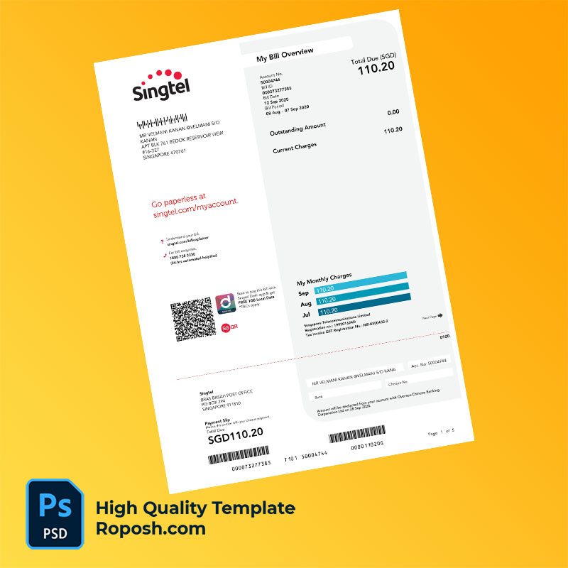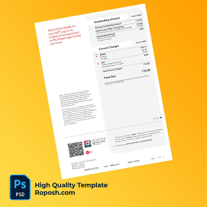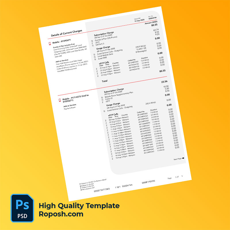 Singapore Singtel Editable Mobile Bill Template in Word and PDF formats