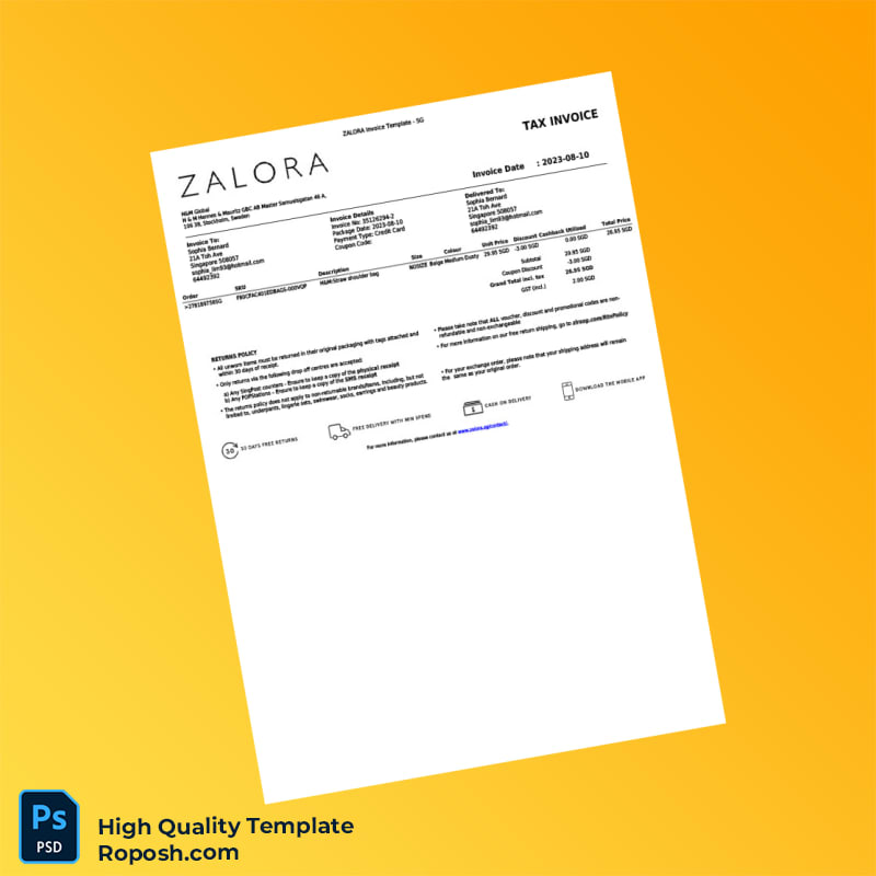 Be the first to review “Singapore Zalora Invoice Template in Word and PDF formats 2 page”