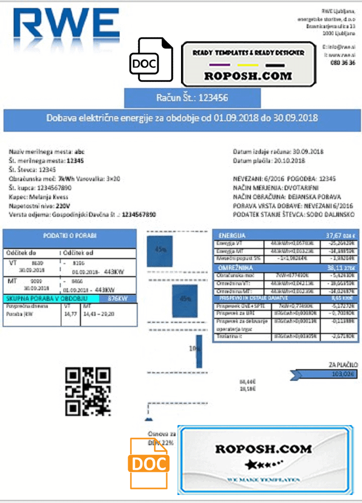 Slovenia RWE electricity proof of address utility bill template in Word and PDF format