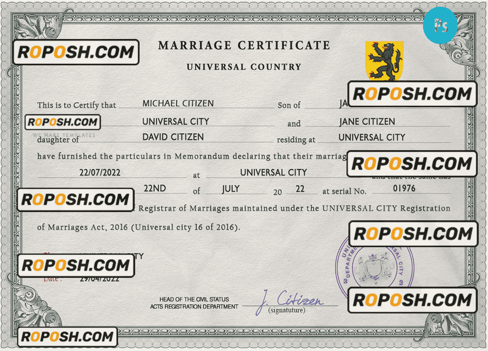 Choose roposh and appreciate the pleasure of a beautiful, authentic-looking Marriage Certificate you can print at home or at your local print shop for a polished presentation.