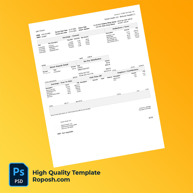 Soliant Health LLC earning statement word and pdf template