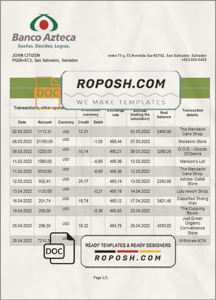 Download our fully editable South Africa Discovery Bank Statement Word Template from Roposh and customize it with your information to create realistic novelty documents. This is especially useful if your bank statement is expired, stolen, or unavailable. We also offer editable credit card templates, ID card PSD templates, bank statement PSD templates, driver’s license PSD templates, and printable editable blank utility bill templates.