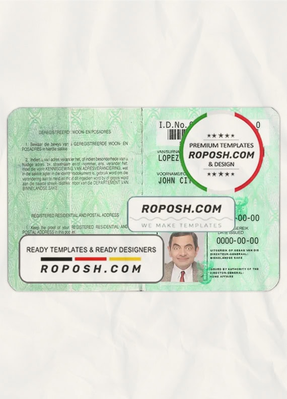 Get your fully editable South Africa ID Card PSD Template now from Roposh. Customize it with your own information to create a realistic Editable ID card. This template is especially useful if your ID card is expired, stolen, or unavailable. We also offer a variety of other templates, including passport PSD templates, editable travel visa templates, bank statement PSD templates, driver’s license PSD templates, and utility bill templates for proof of address.