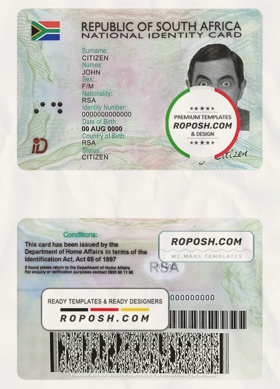 South Africa ID template in PSD format, fully editable (2013 – present)