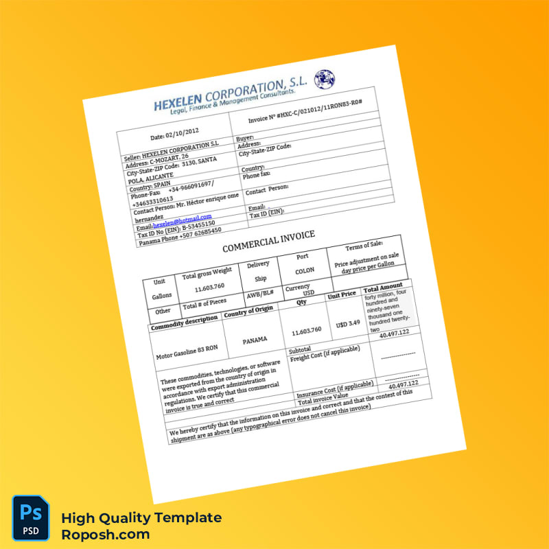 Spain Hexelen Corporation S L Commercial Invoice Template: Effortless Editable Invoice Solutions