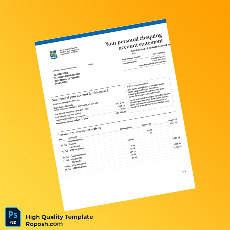 Spain Royal Bank of Canada Account Statement Template in Word and PDF formats