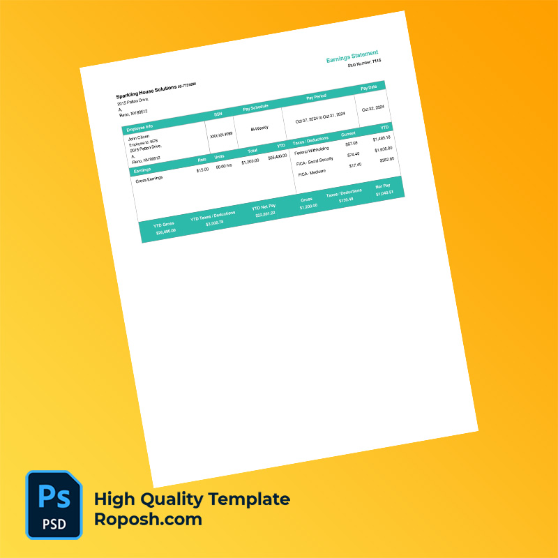 Be the first to review “Sparkling House Solutions earning statement word and pdf template”
