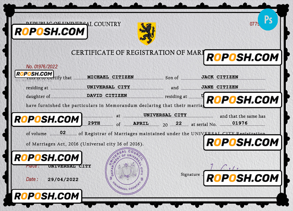 Choose roposh and appreciate the pleasure of a beautiful, authentic-looking Marriage Certificate you can print at home or at your local print shop for a polished presentation.
