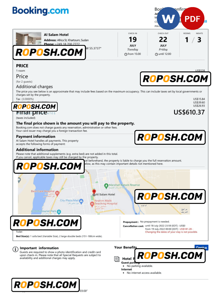 With its user-friendly design and flexible editing capabilities, this editable Sudan hotel booking confirmation hotel, room, house, and Airbnb reservation proof is the perfect choice for anyone looking to create a professional-quality editable hotel accommodation reception. So why wait?