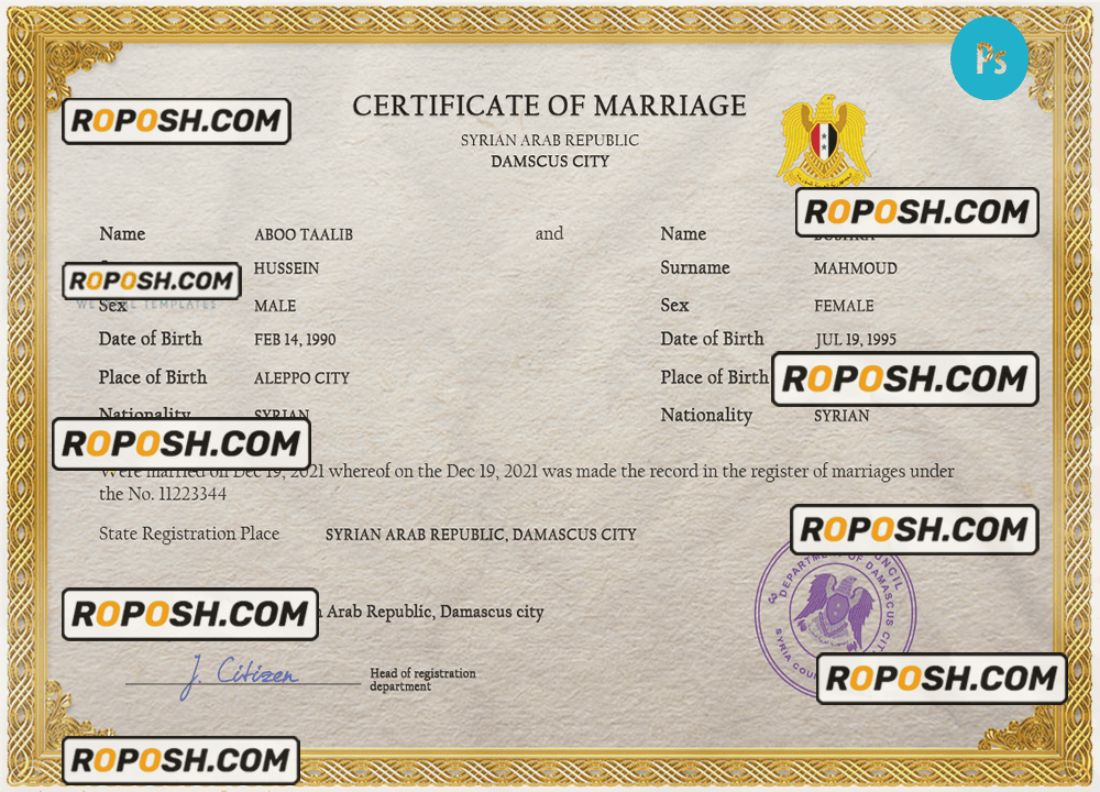 – Join our growing list of satisfied customers today by getting your hands on our blank Syria marriage paper certificates.