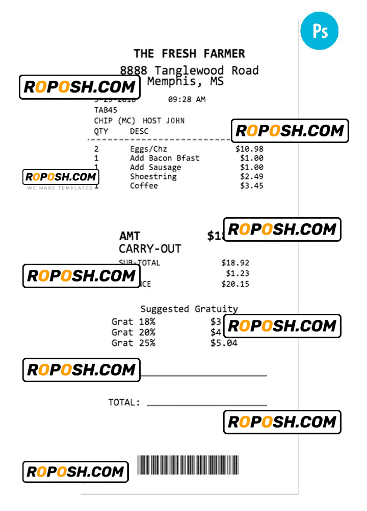 A collection of THE FRESH FARMER payment receipt samples can act as proof that a transaction has been successfully completed; for your convenience, editable payments templates options come in various formats, including Word, Excel, PDF, PSD, Docs and Google Sheets. We provide store receipts’ templates for different types of usages, such as sales, rent, pharmacy, food, and donation receipts from renown markets, services, and shops. Our goal is to offer you reliable and professional design pay editable options that help you manage your finances gals.