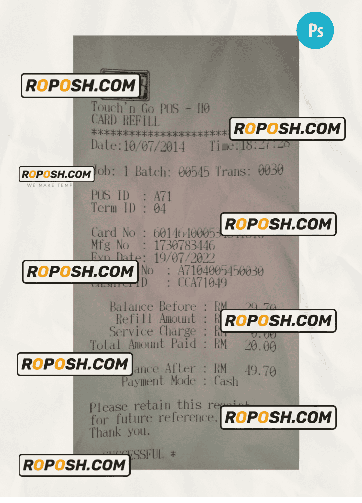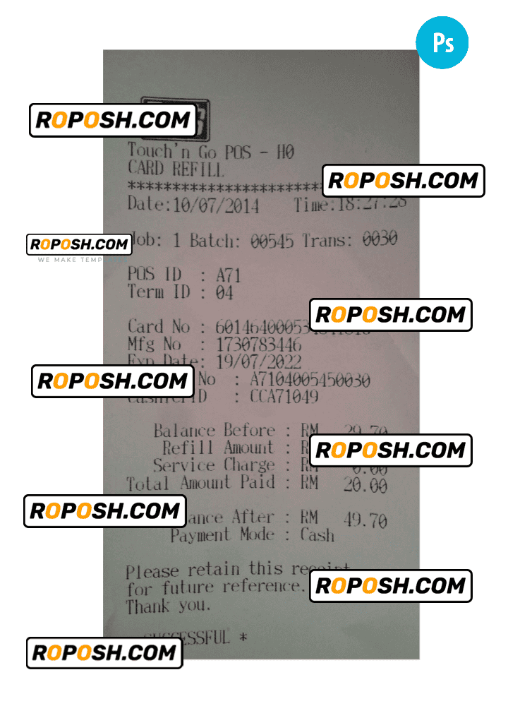 Features Editable TOUCH’N GO Receipt PSD Template :