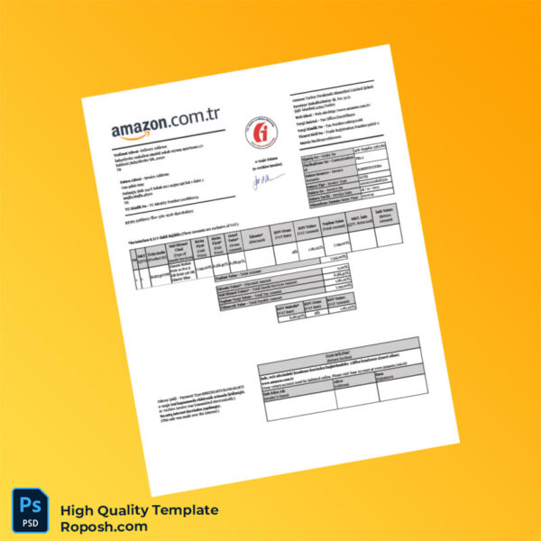 Designed for professionals requiring a fast, reliable, and fully editable invoicing solution, the Turkey Amazon Invoice Template offers seamless customization in both Word and PDF formats. Whether you need an editable blank invoice template for your business records or a printable invoice template for your clients, this product streamlines your invoicing process with ease and professionalism.