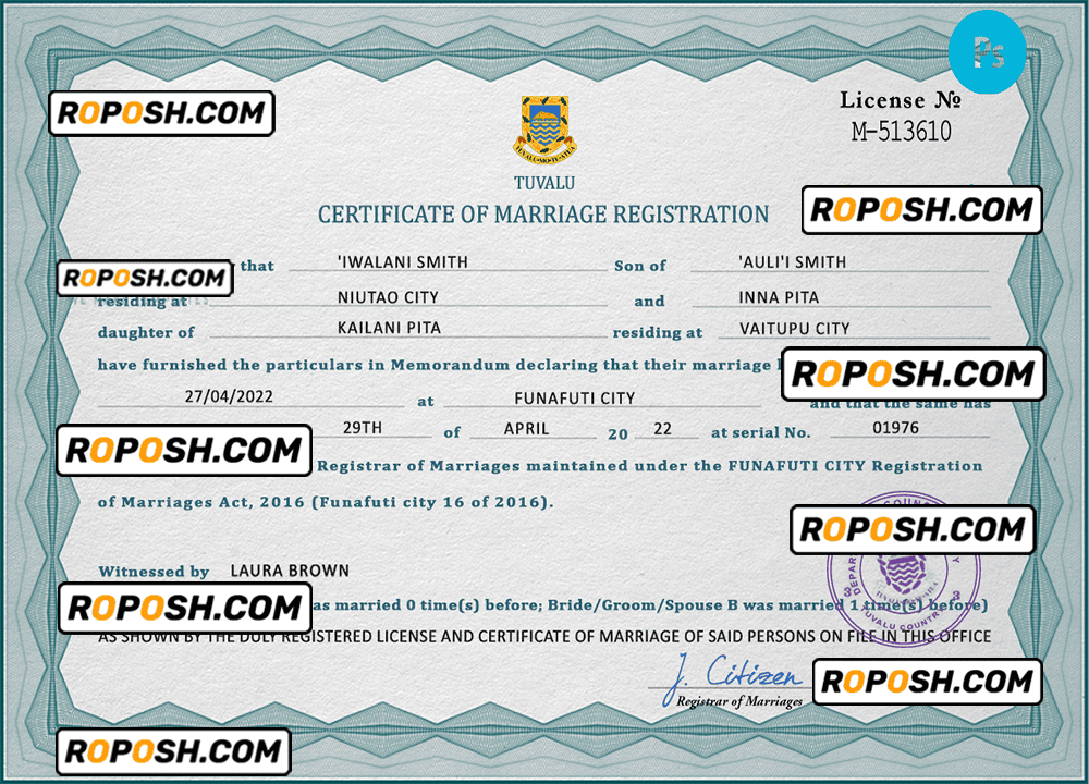 – Join our growing list of satisfied customers today by getting your hands on our blank Tuvalu marriage paper certificates.