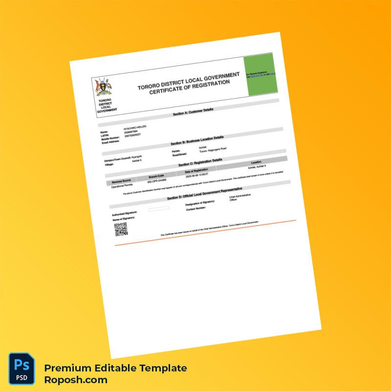 Why Choose Our Editable Uganda Tororo Registration Certificate Template?
