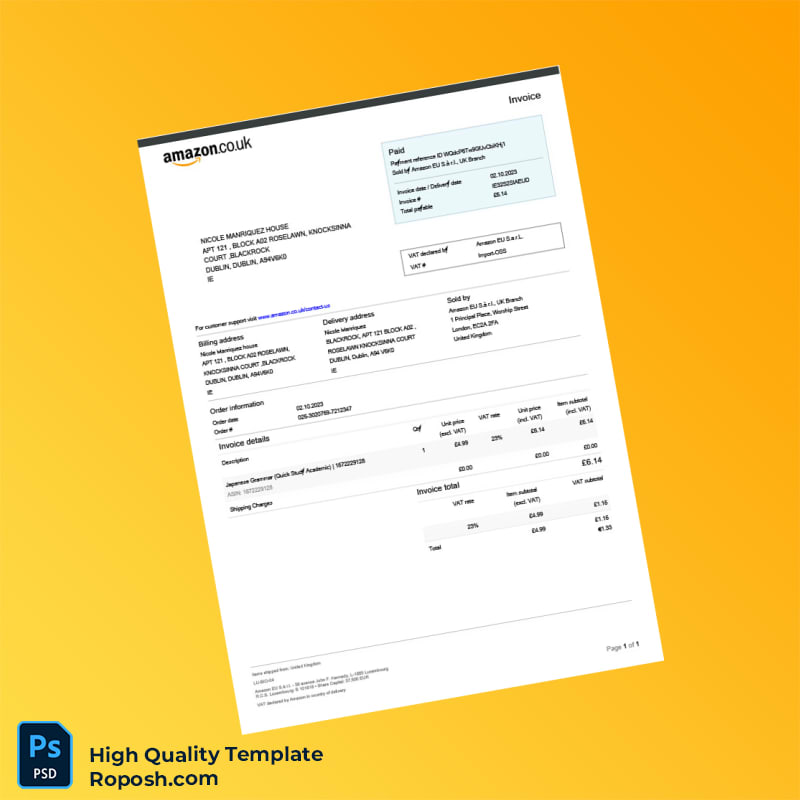 UK Amazon Invoice Template in Word and PDF Formats