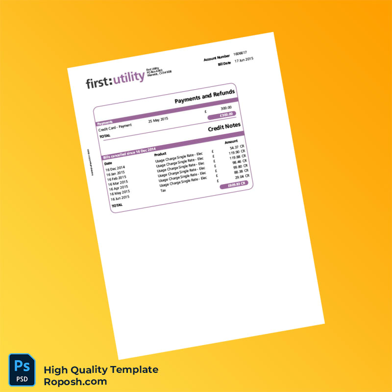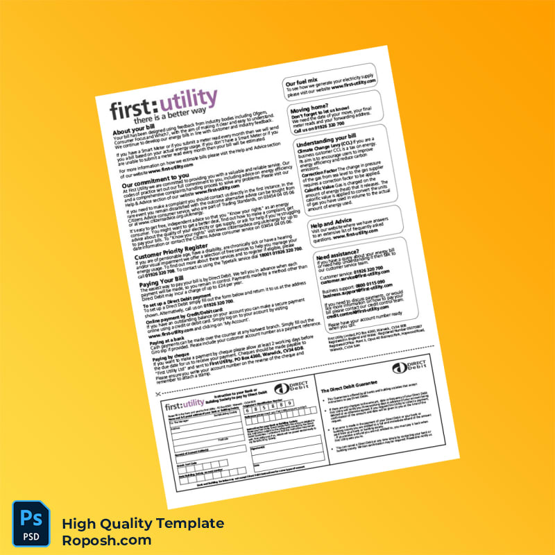 Your next step towards seamless documentation is right at your fingertips. Download the UK First Utility Editable Electricity and Gas Bill Template today and experience the freedom of creating professional utility bills in minutes. For similar templates, explore the New Zealand Electricity Bill PSD Template or our USA Northwestern Rural Electric Utility Bill PSD Template and rapidly fulfill all your billing needs. Don’t let an outdated or missing document hinder your progress any longer!