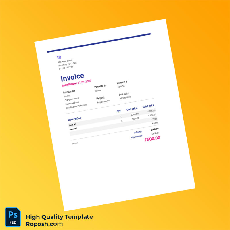 Streamline your billing process with this professionally designed UK Invoice Template, available in both Word and PDF formats. Perfectly tailored for UK-based freelancers, small businesses, and contractors, this editable invoice template simplifies creating, customizing, and printing invoices to ensure your payments arrive promptly and your records remain organized.