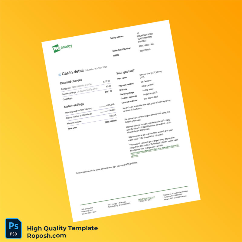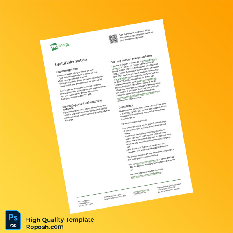 UK OVO Energy Editable Electricity Bill Template in Word and PDF formats 4 page