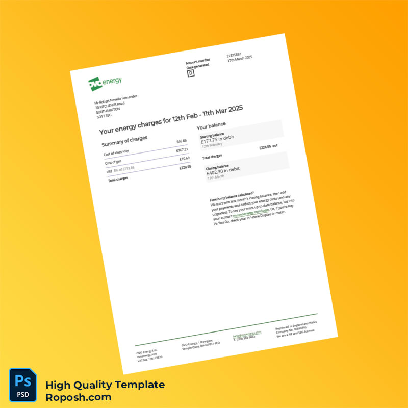 Are you in need of a reliable and professional utility bill proof of address template? Look no further! Our UK OVO Energy Editable Electricity Bill Template, available in both Word and PDF formats, is designed to address your urgent requirements with utmost convenience and efficiency.