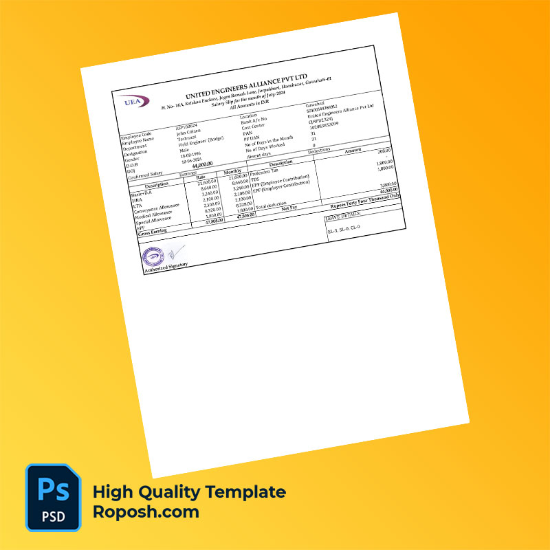 United Engineers Alliance PVT LTD payslip word and pdf template