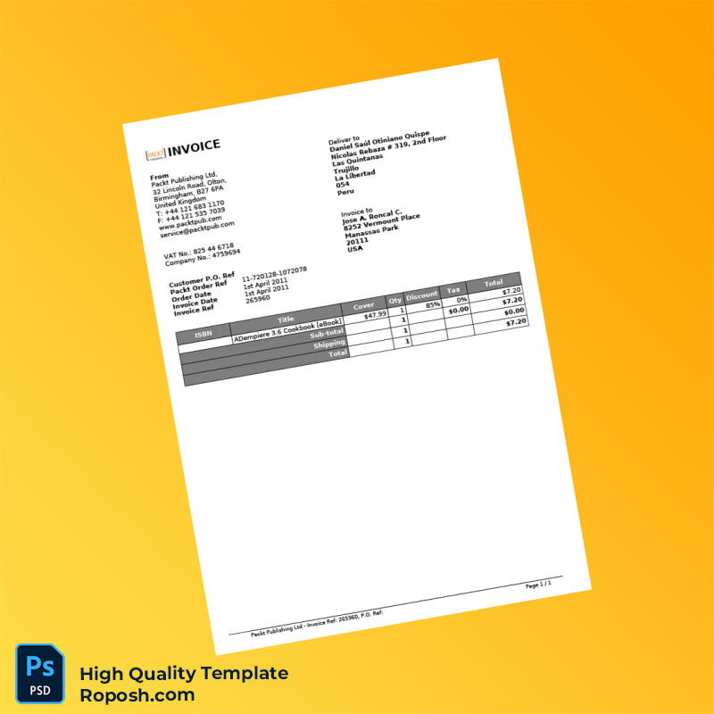 Be the first to review “United Kingdom Packt Publishing Ltd Invoice Template in Word and PDF formats”