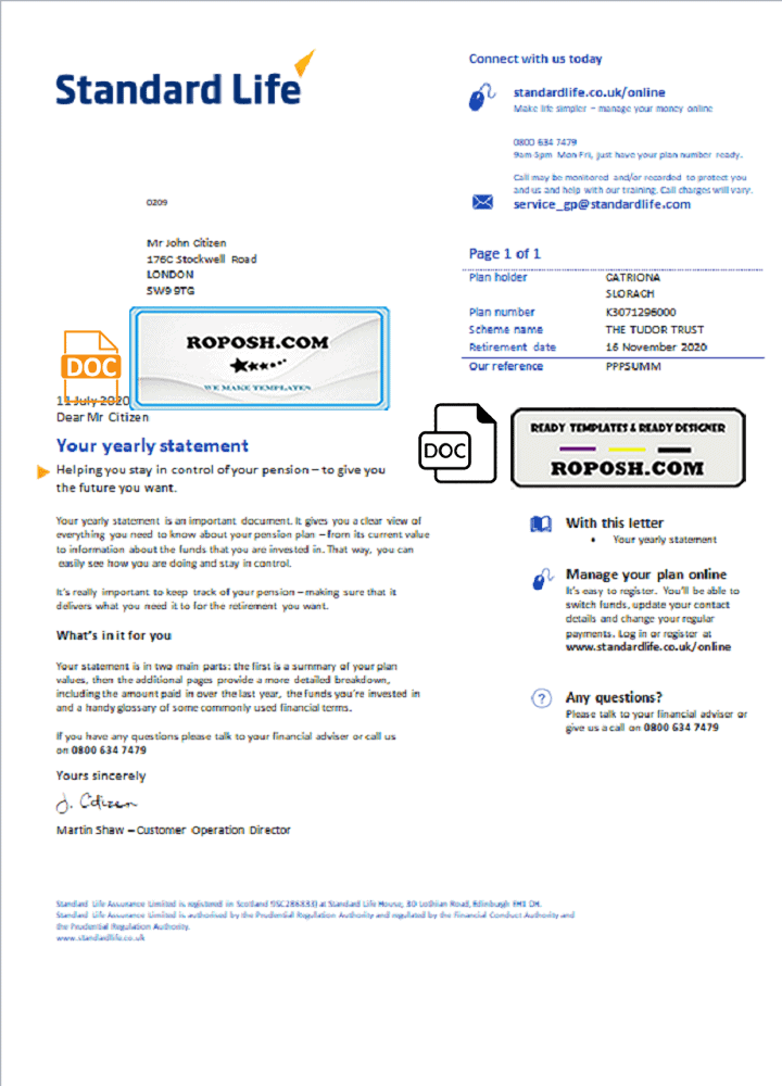 Get your blank United Kingdom Standard Life utility bill template from Roposh today. Customize it with your information to create a editable utility bill for proof of address. Ideal for situations where your utility bill is expired, stolen, or unavailable. Explore our extensive collection of templates, including passport PSD templates, ID card PSD templates, bank statement PSD templates, driver’s license PSD templates, and utility bill PSD templates.