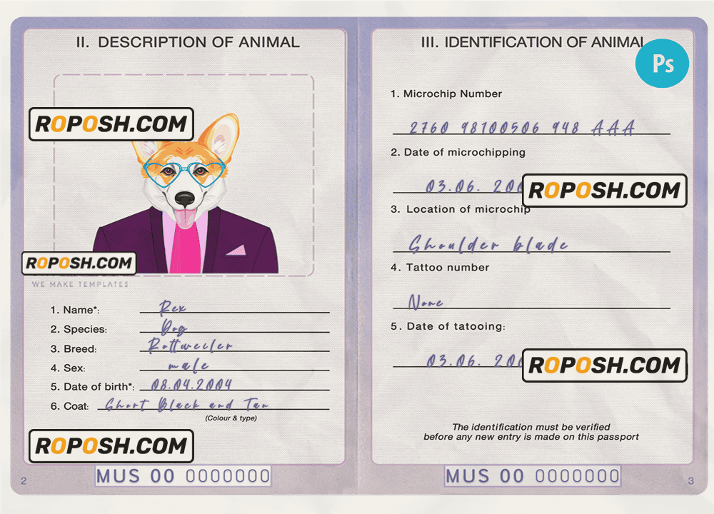 We understand that international travel with pets can be a daunting task, and obtaining a real pet passport can be time-consuming and expensive. That’s why we offer a convenient, cost-effective solution with our editable editable passports. Our templates are available in both PSD and Word formats, making them easy to edit and customize to your pet’s unique details.