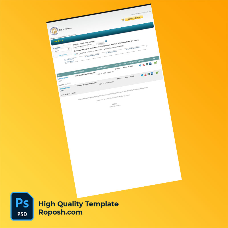 US City of Hartford Editable Tax Bill Template in Word and PDF formats