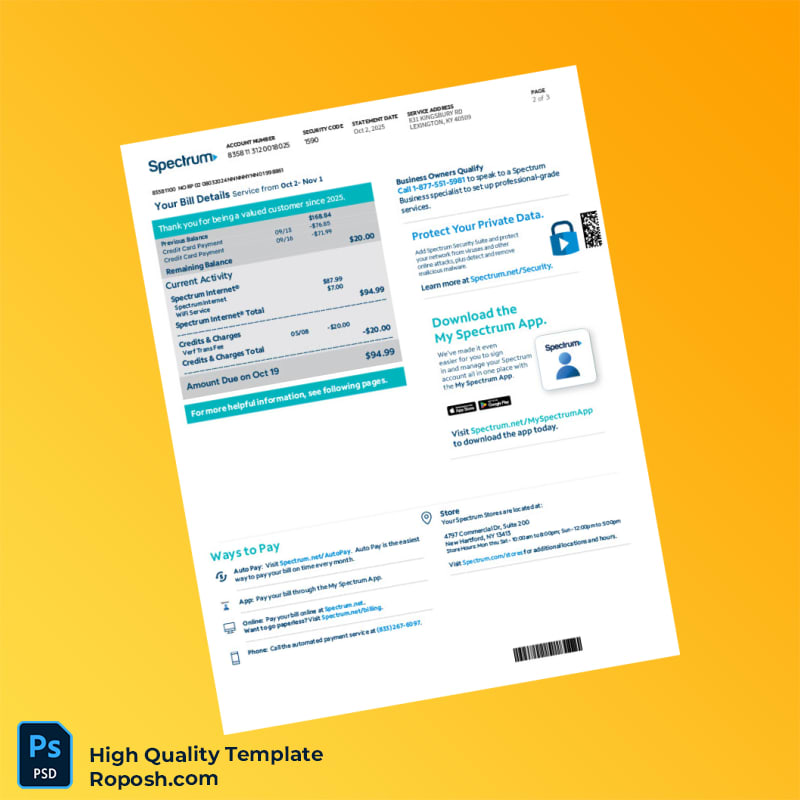 Are you in need of a reliable utility bill proof of address template? Look no further than the US Spectrum Editable Utility Bill Template, available in both Word and PDF formats. This comprehensive template not only offers the convenience of quick edits but also meets all requirements for professional documentation.