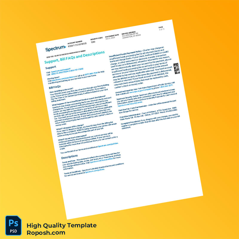 US Spectrum Editable Utility Bill Template in Word and PDF formats 3 page