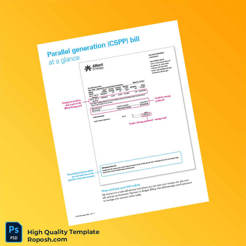 Finding a reliable and professional utility bill proof of address template can be a daunting task, especially when you’re in a rush. Whether you’ve lost your original document, need an immediately available version for verification, or just want to ensure your personal information is up to date, the USA Alliant Energy Editable Parallel Generation CSPP Bill Template is here to rescue you.