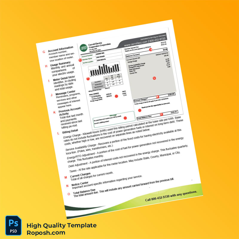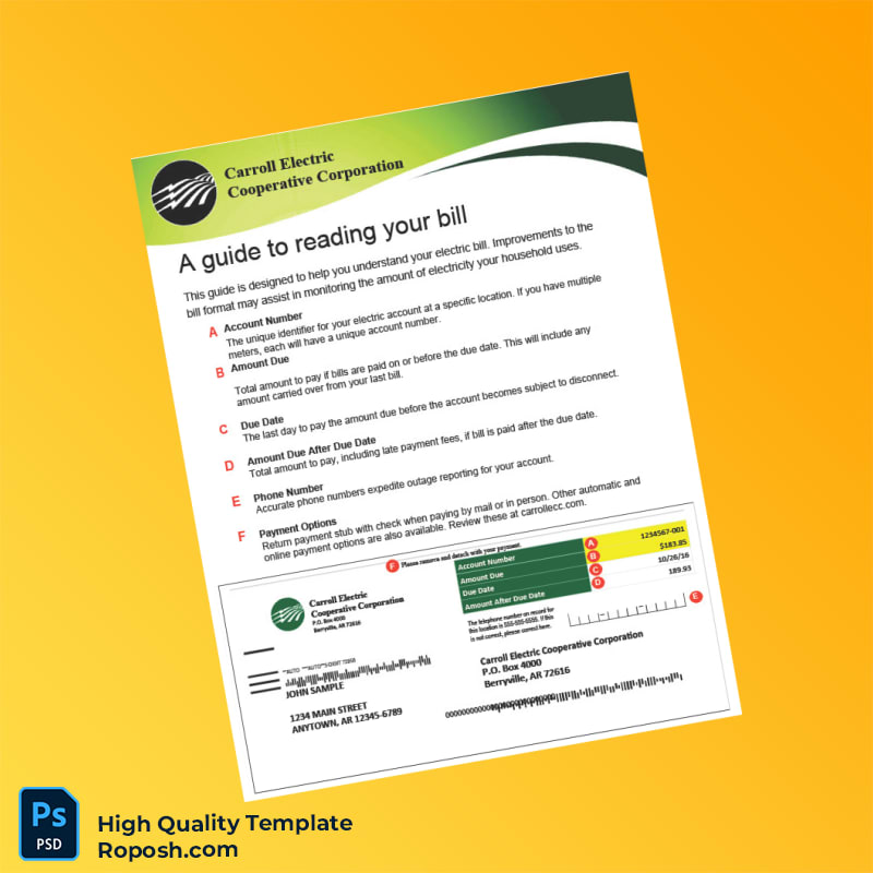 Are you in need of a reliable utility bill proof of address template? The USA Carroll Electric Cooperative Corporation Editable Electricity Bill Template provides a quick and professional solution for your documentation needs in both Word and PDF formats.