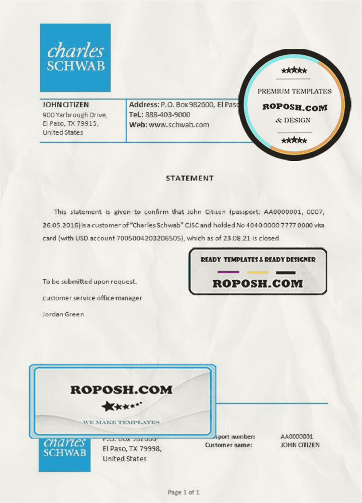 Be the first to review “USA Charles Schwab bank account closure reference letter template in Word and PDF format”