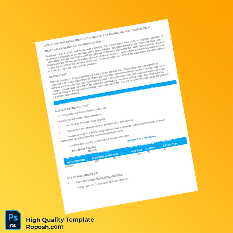 Revitalize Your Home with the USA City of Chicago Editable Water Bill Template